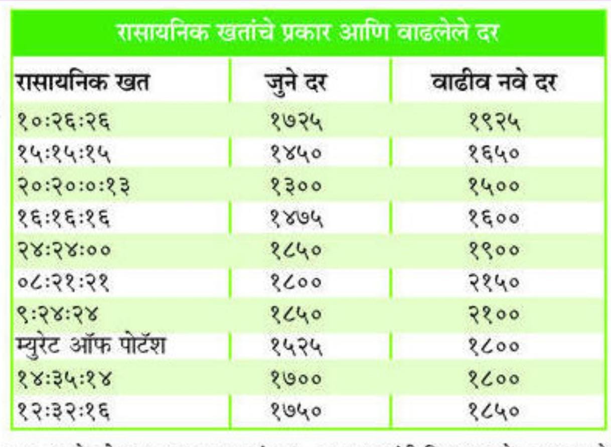 खतांच्या भावात पुन्हा वाढ, पहा कोनते खत किती रूपयांना ?